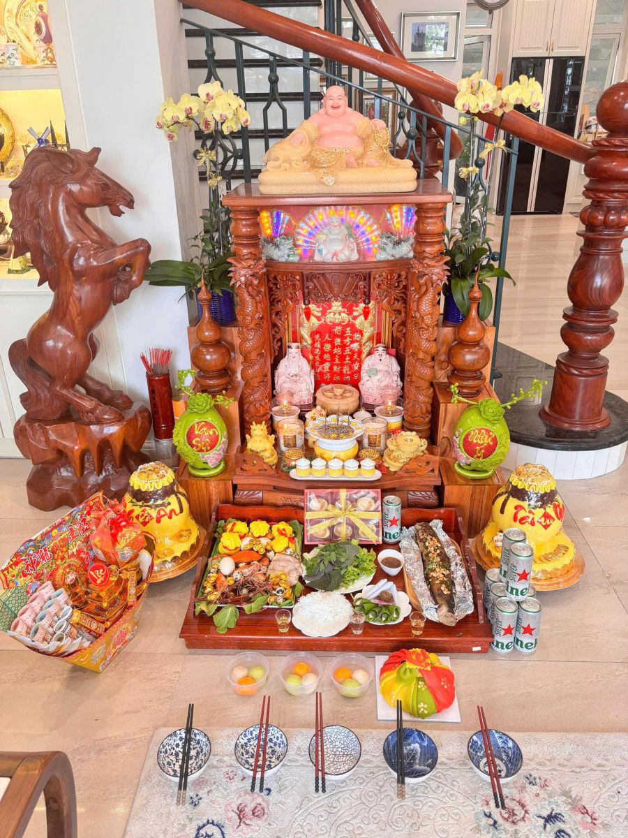 Tất nhiên, mâm cúng Thần Tài của người miền Nam không chỉ có cá lóc nước. Gia chủ thường chuẩn bị đầy đủ nến, hoa tươi, tôm, cua, thịt heo quay, ngũ quả và rượu, còn có cả chè.