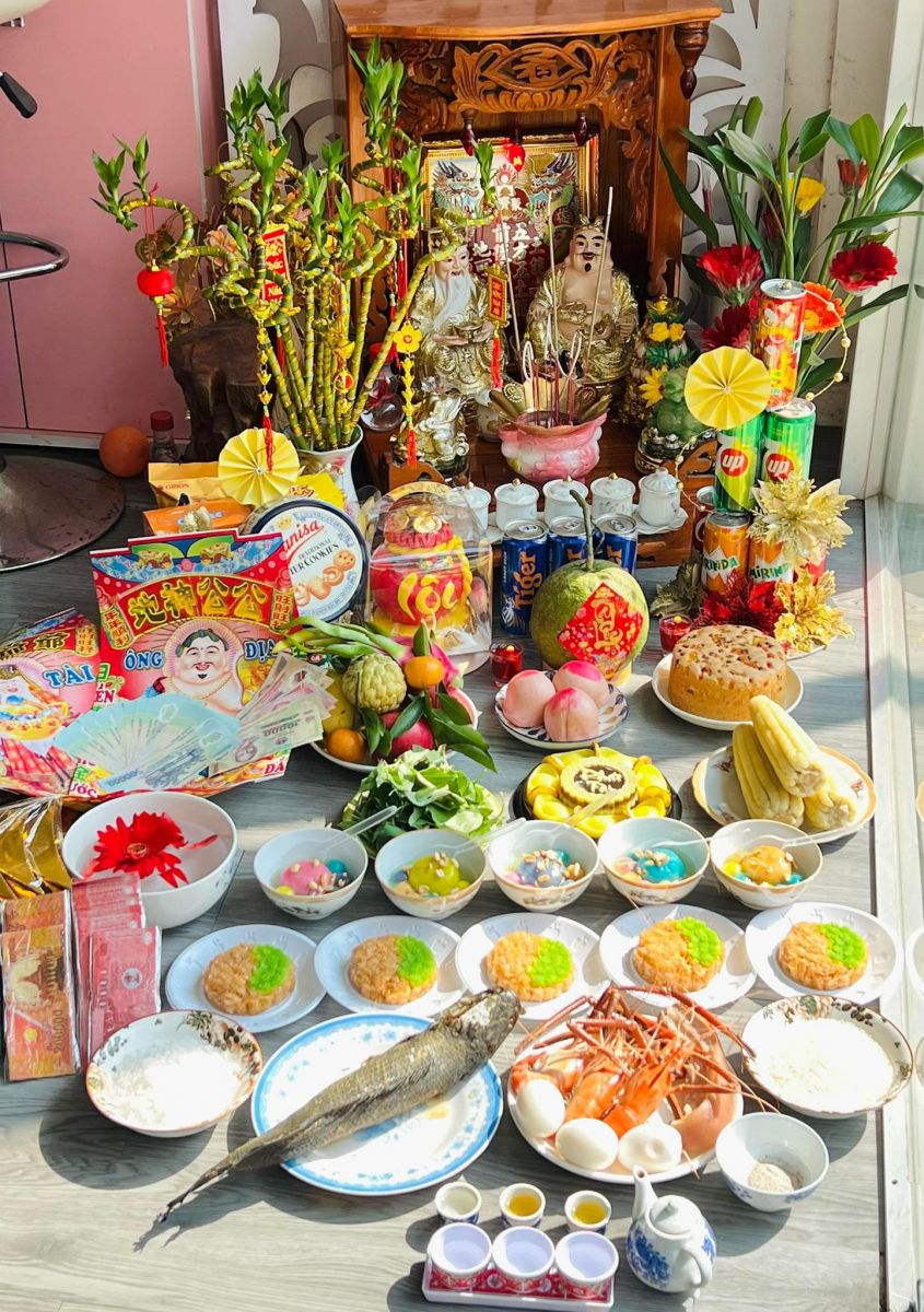 Mâm cúng đủ đầy các loại Vật phẩm bánh Phong thuỷ hút Tài lộc, Vượng khí