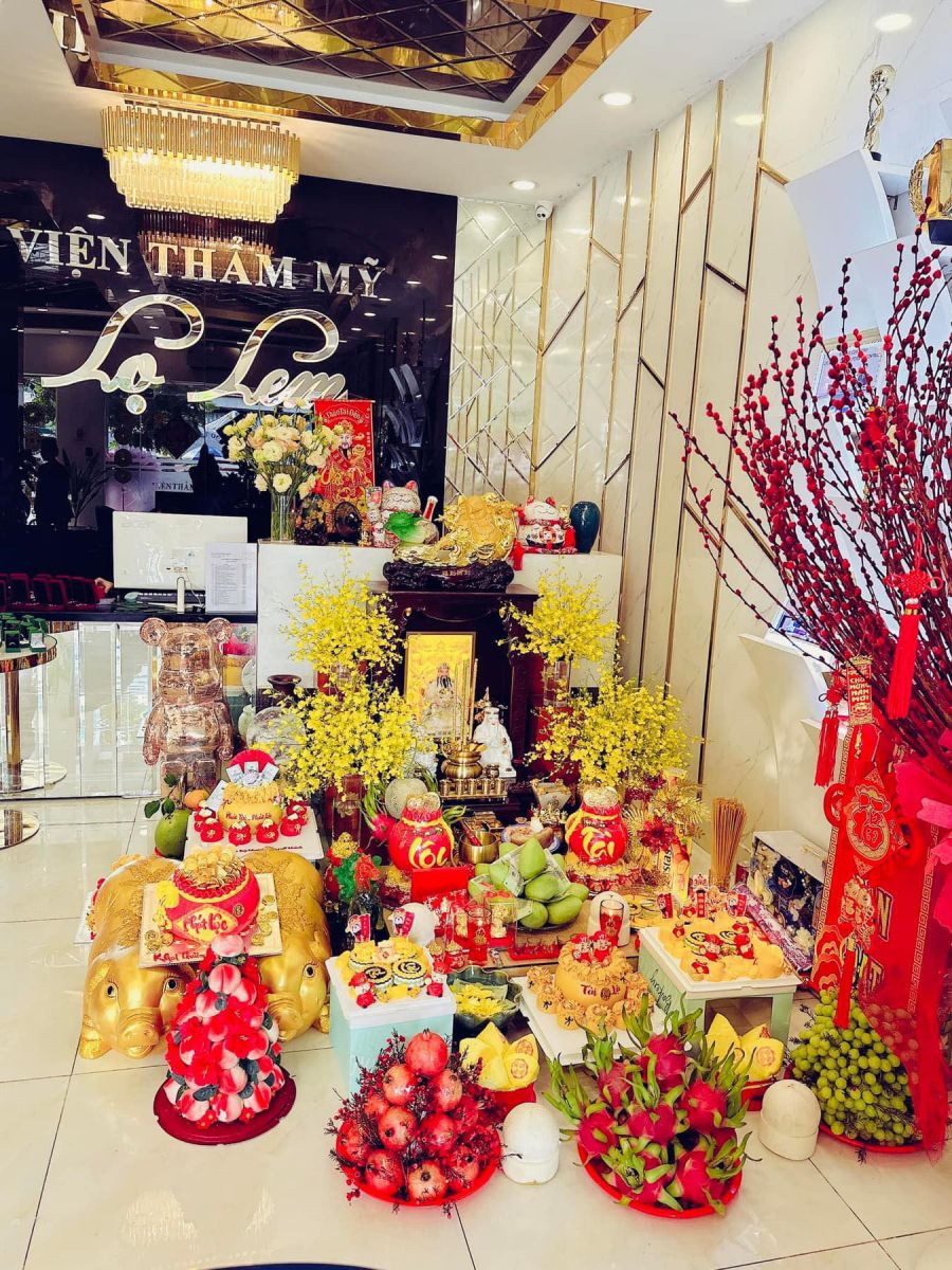 Mâm Cúng thần Tài đủ đầy các loại Vật phẩm Bánh Phong thuỷ Tài Lộc