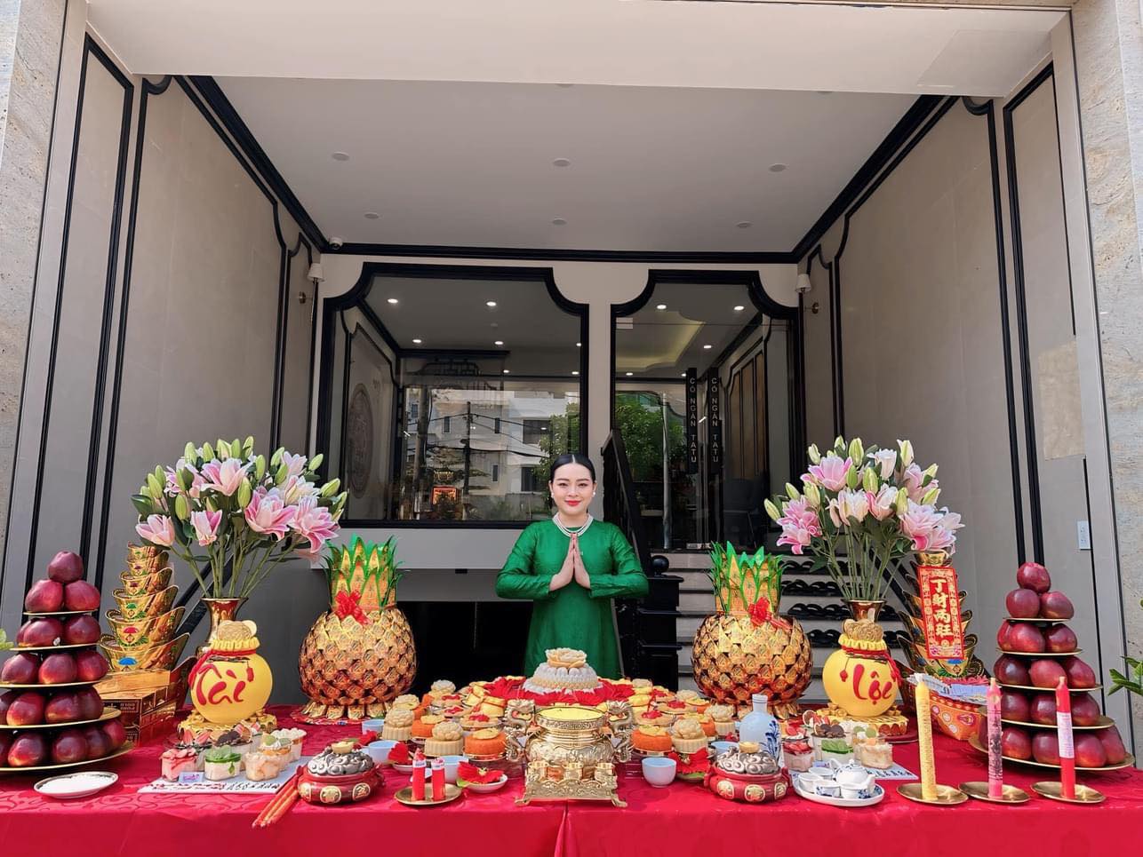 Mâm cúng đủ đầy Vật phẩm Bánh túi tiền dâng ngày Vía Thần Tài